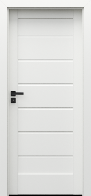 Atât rama canatului, cât și panourile sunt executate din MDF. În funcţie de model, canatul este dotat cu sticlă mată securizată de 4 mm grosime. Tocuri recomandate pentru uși cu falț: (colecțiile MINIMAX și Porta DECOR): -Toc de ușă Porta SYSTEM cu finisaj Portadecor -Toc de ușă MINIMAX cu finisaj Portadecor.